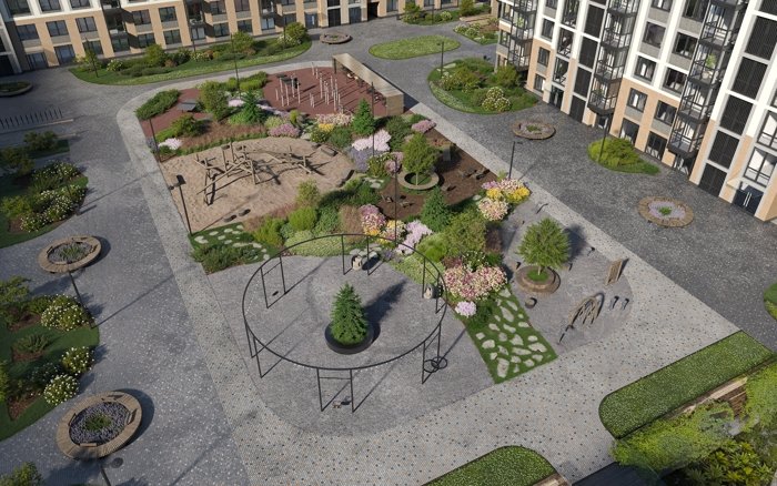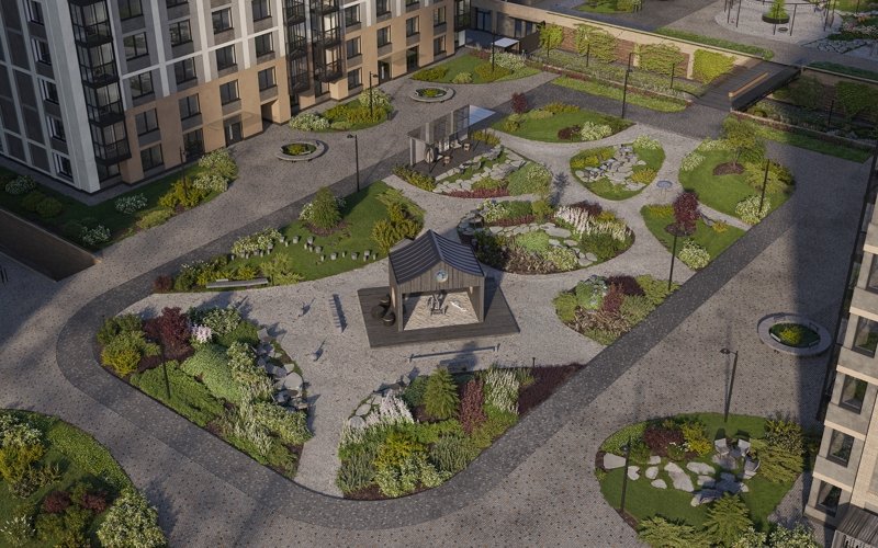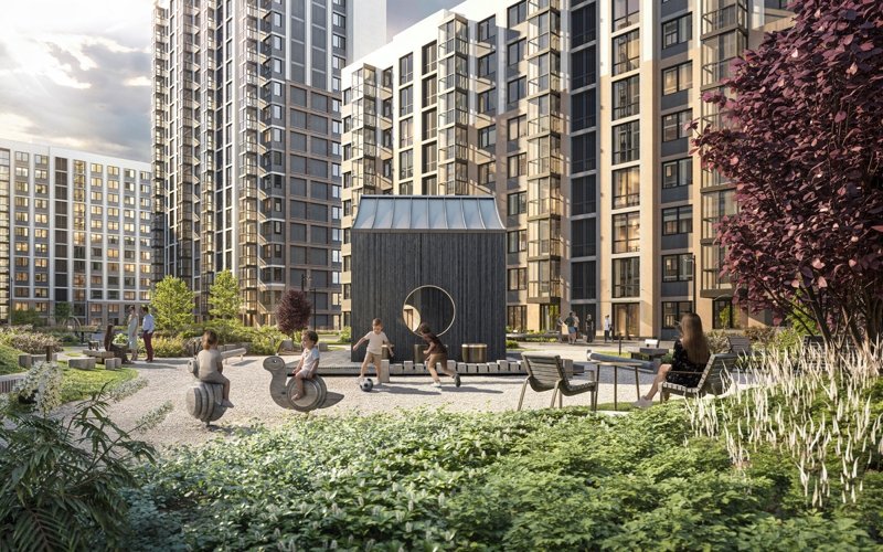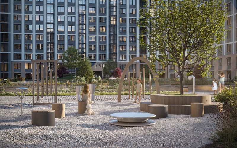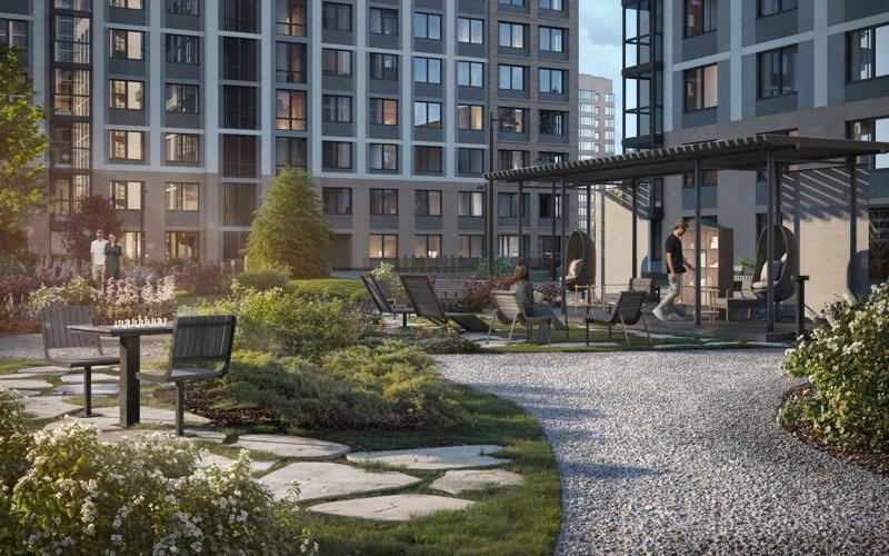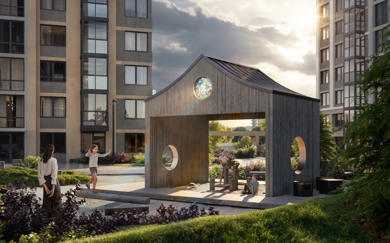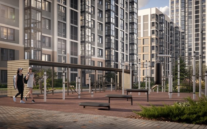 Мост даёт возможность жителям комплекса свободно перемещаться между дворами и пользоваться всем оборудованием.