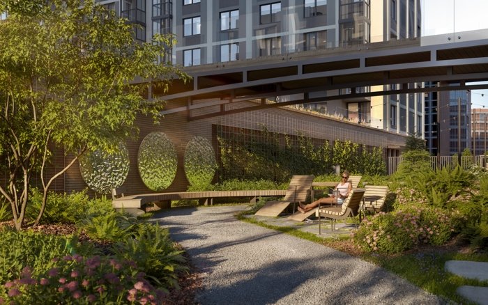 Под мостом пройдёт променад для прогулок и отдыха в гамаках и на скамьях.