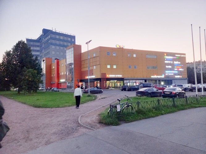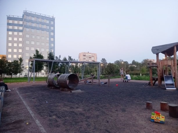 Вдоль неё располагается зелёная территория со спортплощадкой, детскими площадками и тенисными столами. Попасть в это пространство - просто перейти проспект Большевиков.