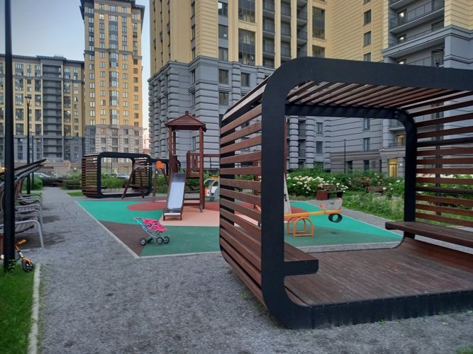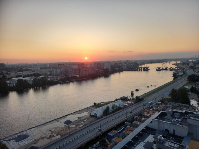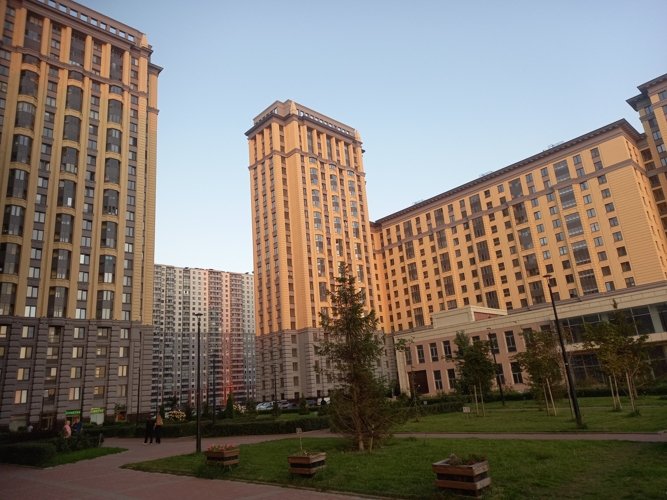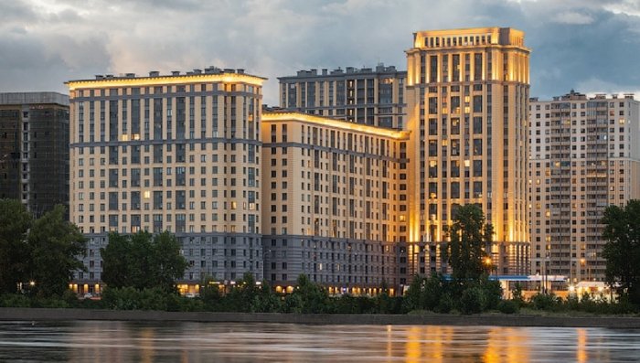 ЖК “Цивилизация на Неве” отдалённо напоминает первые небоскрёбы Чикаго. Добавим сюда вечернюю подсветку - и солидность обеспечена. Внутри ЖК есть и фитнес-клубы, и тайский SPA салон, и рестораны, и кафе, и барбершоп, и ногтевая студия, и зоопарикмахерская - все атрибуты цивилизации