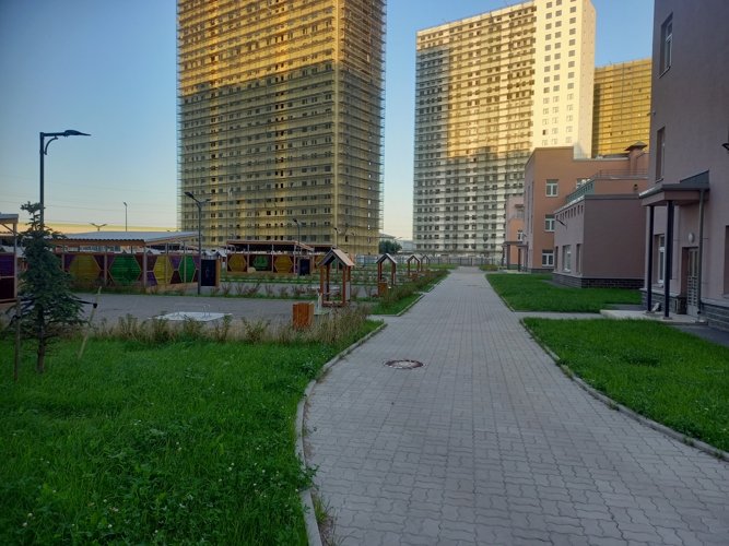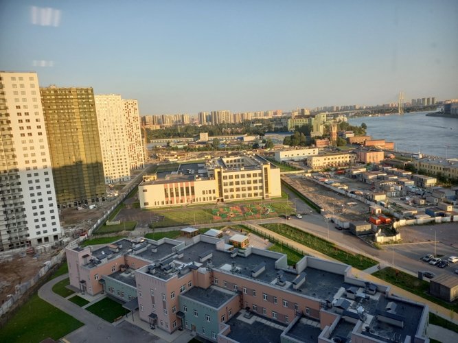 Она и дала название комплексу. Хорошее место для любования Невой, прогулок, пробежек и катания на велосипеде. Для автомобилистов хороша и как путь к Центру (15 минут), так и к КАД (7 минут)