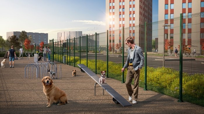 Жилой комплекс предполагает создание благоустроенной среды: закрытые дворы с площадками для спорта и игр, коммерческая инфраструктура на первых этажах, паркинги, площадка для выгула собак и станции зарядки электромобилей. Также в рамках проекта возводятся детский сад и школа.